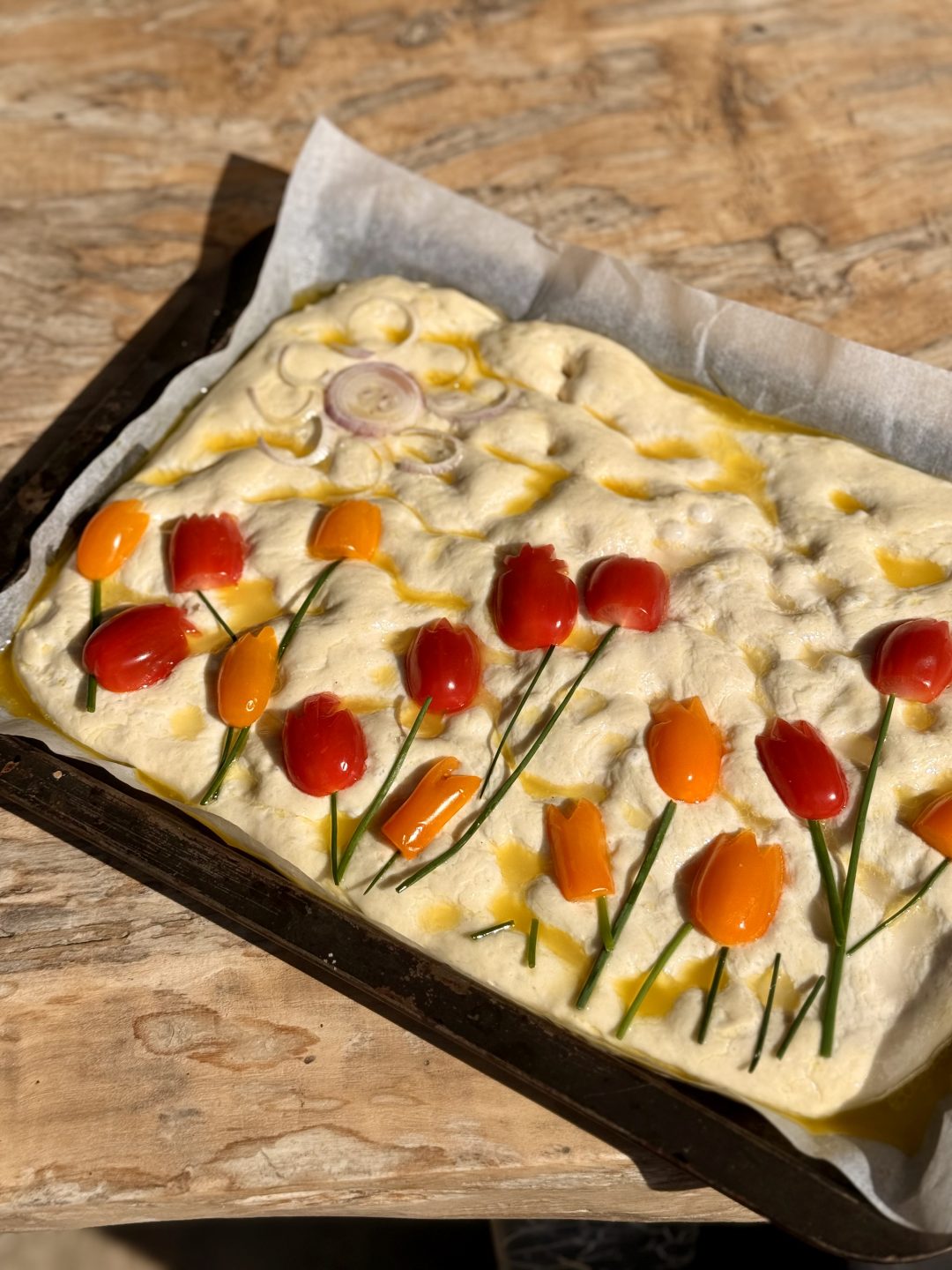 • Enfourner 20 à 25 min, jusqu’à ce que la focaccia soit dorée et moelleuse.