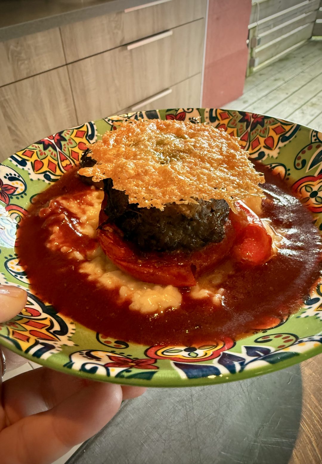 • Incorporer ensuite la stracciatella fumée pour un résultat encore plus crémeux.
