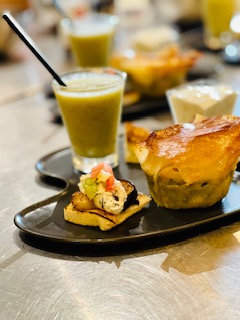 Badigeonner un moule à tarte d’huile d’olive ou 10 moules type cup-cakes. Poser une feuille de brick (si le moule est petit, la couper en deux) et badigeonnez-la d’huile d’olive. Garder le reste des feuilles bien recouvertes car elles sèchent vite. Procéder de même avec 8 autres feuilles (elles dépasseront du moule, c’est normal).